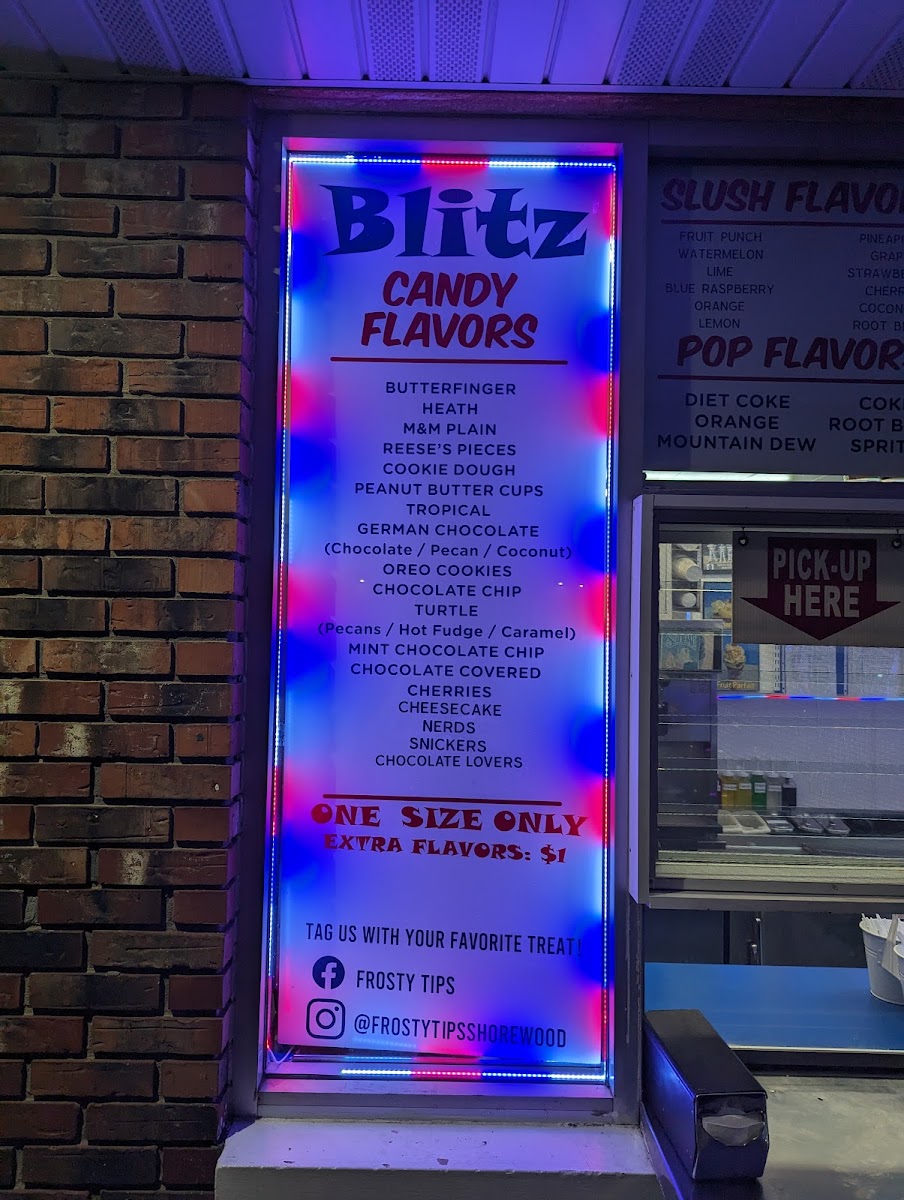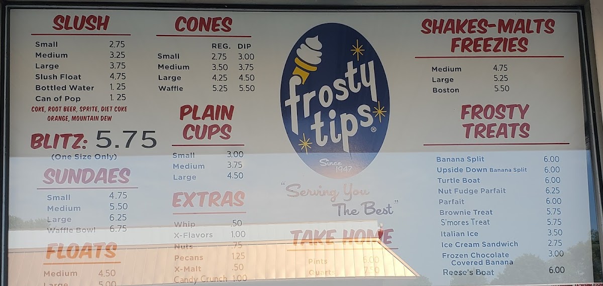 The menu at Frosty Tips offers a straightforward, inviting selection of classic ice cream treats perfect for casual outings or quick refreshing stops. Whether you’re looking for a simple cone, a generously topped sundae, or a cool, flavored slush, the options cater to a relaxed, family-friendly atmosphere just a short walk from the Shorewood library.